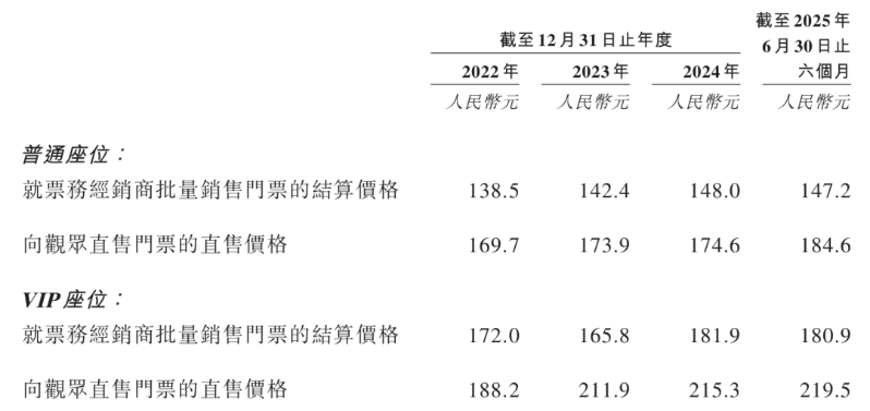 從經(jīng)營(yíng)數(shù)據(jù)來看,這一核心IP一直保持著市場(chǎng)韌性。2022年-2024年及2025年上半年,《印象·大紅袍》山水實(shí)景演出分別發(fā)行39.99萬張、91.85萬張、82.25萬張及31.17萬張門票。于最后可行日期,該項(xiàng)目已演出超過6700場(chǎng)次,自2010年首演以來吸引觀眾超過940萬人次。同時(shí),無論是普通座位還是VIP座位,近年來銷售價(jià)格總體呈現(xiàn)穩(wěn)步上升趨勢(shì)。