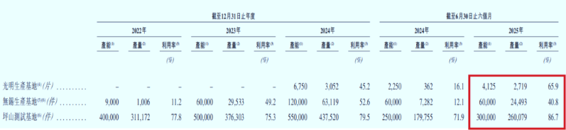 產(chǎn)能端同樣面臨挑戰(zhàn):2025年上半年,無錫生產(chǎn)基地利用率僅40.8%,2024年4月投入運(yùn)營的光明生產(chǎn)基地利用率為65.9%,僅深圳坪山測(cè)試基地利用率維持在86.7%的較高水平。而從產(chǎn)量上來看,無錫基地碳化硅功率模塊年設(shè)計(jì)產(chǎn)能僅12萬件,與頭部廠商產(chǎn)能差距較大。