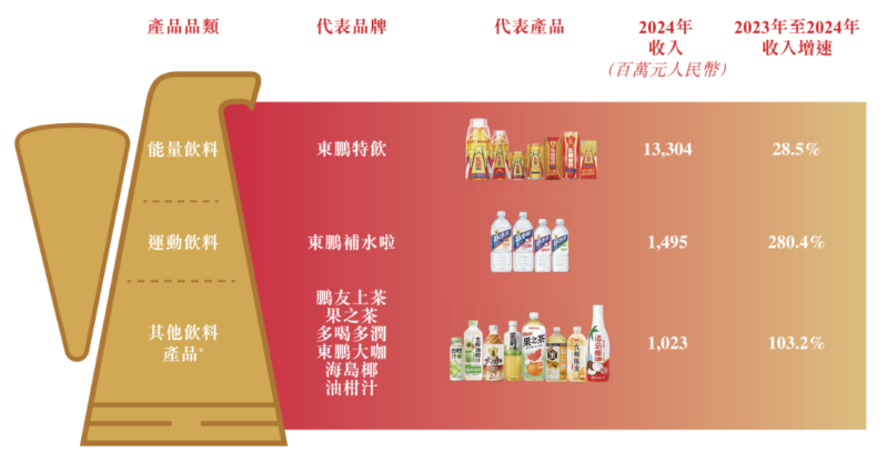 實際上,為破解大單品依賴,東鵬飲料近年來已加速品類擴充。2021年以來,東鵬飲料密集推出包括“東鵬0糖特飲”“東鵬大咖”“她能”等各類新品,但直到2024年,東鵬飲料“其他飲料產(chǎn)品”營收仍只有10.23億元,營收貢獻占比僅為6.5%。