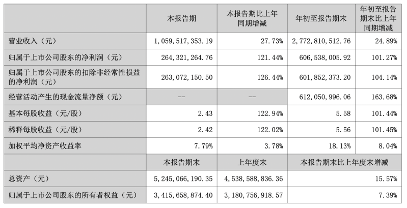 2025年前三季度,公司實現(xiàn)營收為27.73億元,同比增長24.89%;歸母凈利潤為6.07億元,同比增長101.27%。
