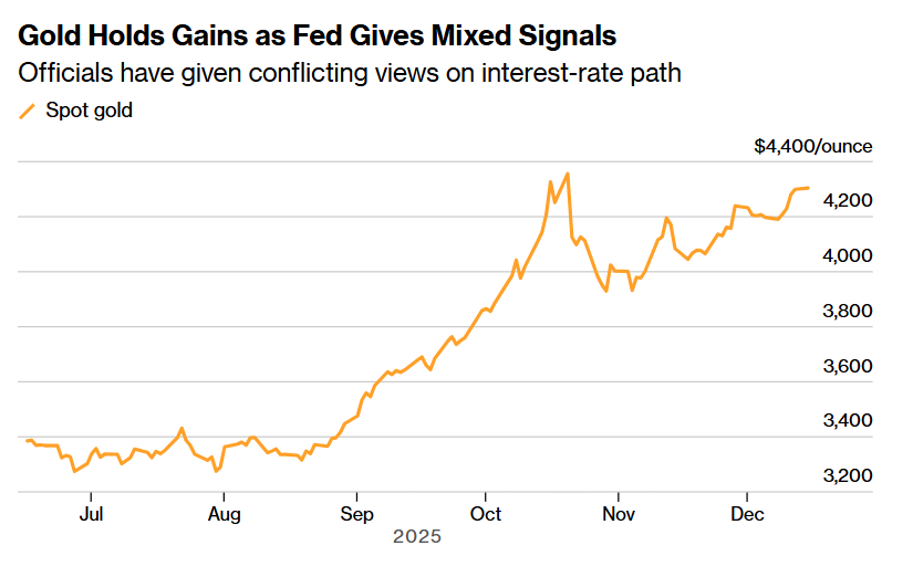 美聯(lián)儲12月降息決議的兩位反對者——芝加哥聯(lián)儲主席奧斯坦·古爾斯比(Austan Goolsbee)與堪薩斯城聯(lián)儲主席杰夫·施密德(Jeff Schmid)——在周五發(fā)布聲明,解釋其投票反對降息的理由。古爾斯比表示,在聯(lián)邦政府停擺導(dǎo)致關(guān)鍵經(jīng)濟報告延遲之后,再次降息前“更審慎”的做法應(yīng)是等待更多數(shù)據(jù)信息;施密德則稱通脹“仍然過高”。貴金屬通常在低利率環(huán)境中表現(xiàn)更佳,因為它們不支付利息。