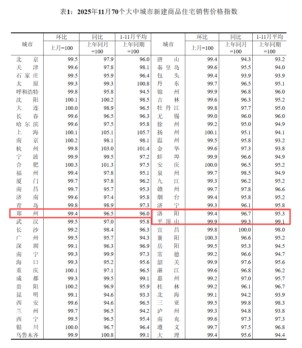 國家統(tǒng)計(jì)局今日發(fā)布2025年11月份70個(gè)大中城市商品住宅銷售價(jià)格變動(dòng)情況。發(fā)布數(shù)據(jù)顯示,2025年11月份,70個(gè)大中城市商品住宅銷售價(jià)格環(huán)比總體下降、同比降幅擴(kuò)大。