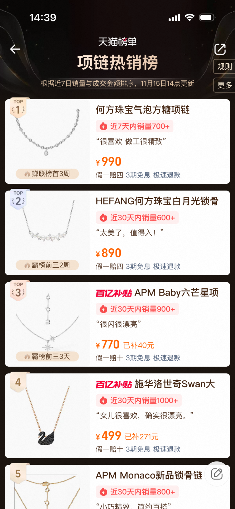 然而,今年天貓“雙十一”珠寶飾品類目榜單中,一家名叫HEFANG Jewelry(何方珠寶)的珠寶品牌,取代了這些“洋面孔”,登頂榜首。
